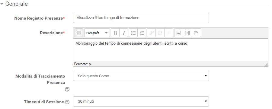 Per l'attività registro presenze considerare l'attività completate in base a condizioni di tempo totale di tracciamento, spuntare il tempo minimo espresso in minuti.