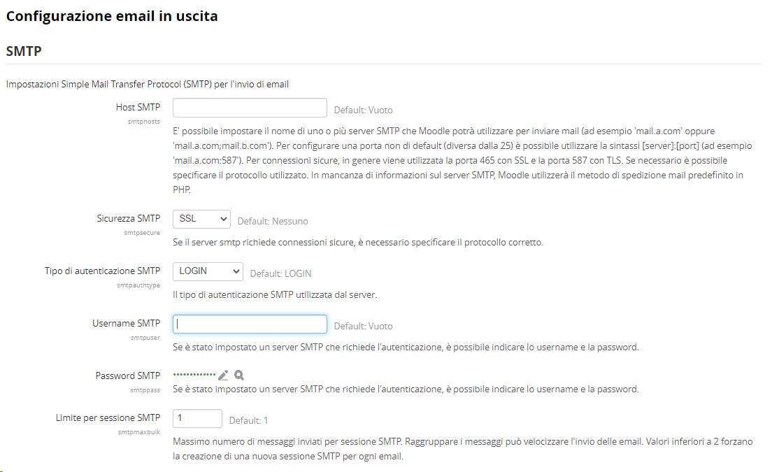 Amministrazione del sito - Server - Email - Configurazione email in uscita.