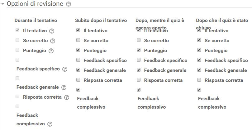 Queste impostazioni controllano le informazioni che gli utenti potranno visualizzare dopo avere tentato il quiz.